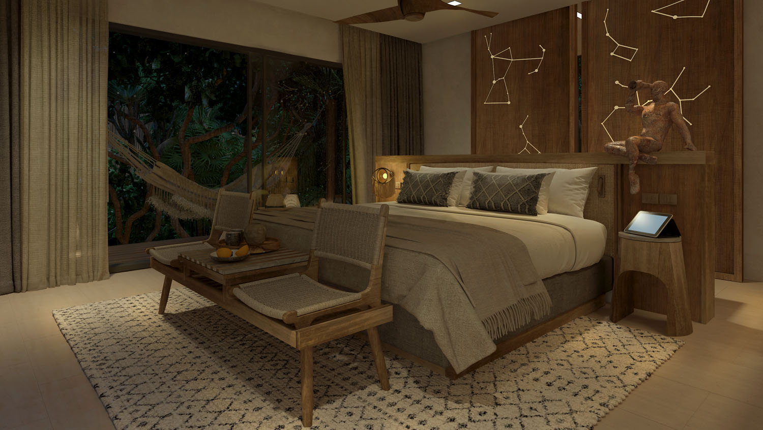 Su concepto se inspira en las constelaciones y su observación. La conexión entre las estrellas genera geometrías perfectamente equilibradas entre sí. En cada detalle de las habitaciones se respira herencia, origen y arte.