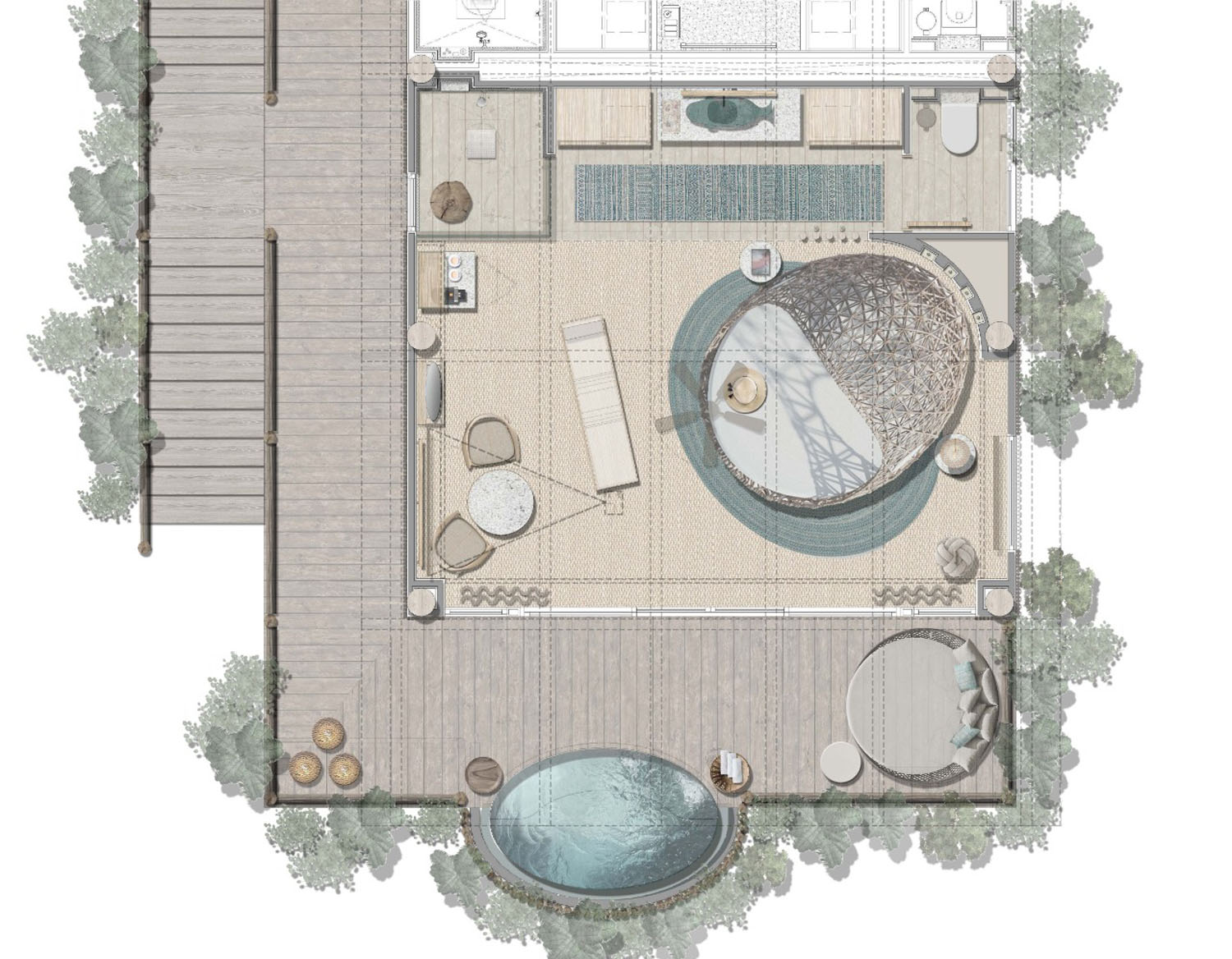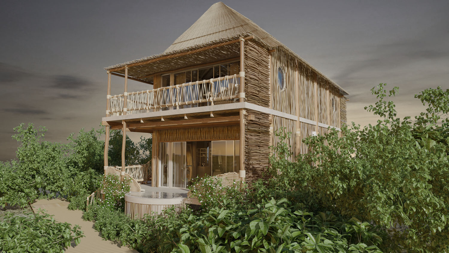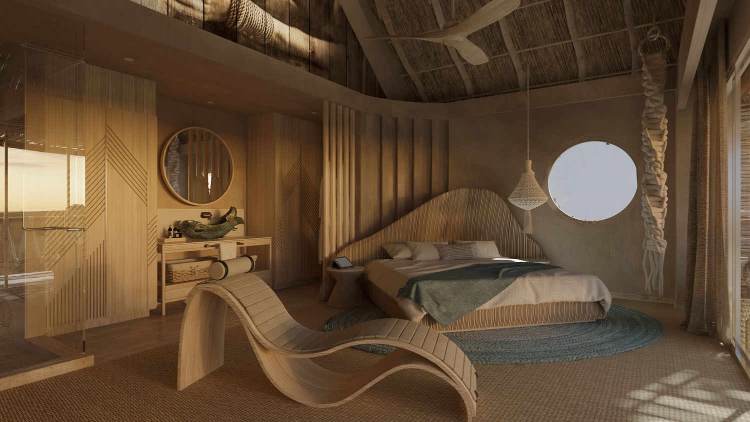 Cada una de las villas privadas se envuelve en un ambiente fresco bajo la sombra de la selva tropical ofreciendo el confort de un hotel boutique. Tejidos, texturas y destellos de color resaltan cada uno de los detalles diseñados bajo el concepto de la técnica Shibari.