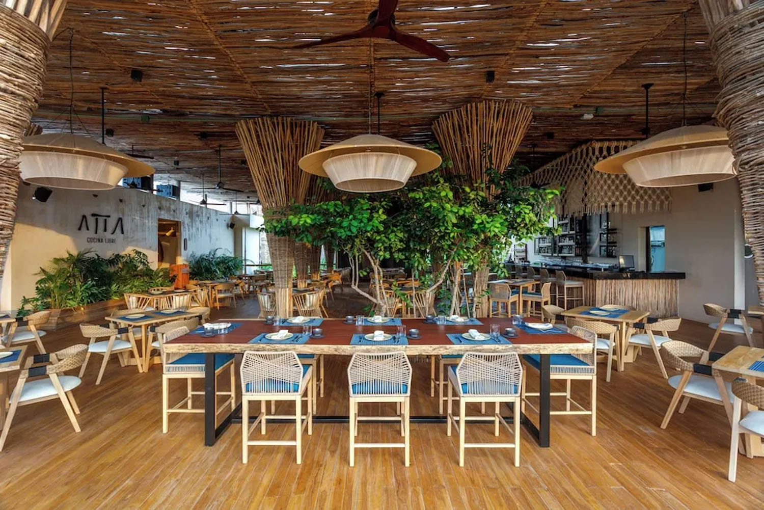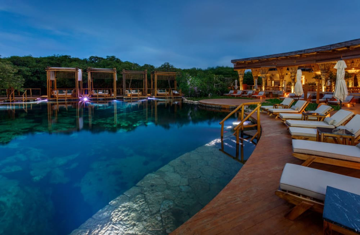 El Cenote Club y Restaurante desembocan alrededor del cenote sagrado que refresca las áreas comunes y se vuelve el atractivo por la noche con su mística belleza natural. El lobby, lobby bar, Spa y Boutique forman parte de las áreas que acompañan a este icónico proyecto.